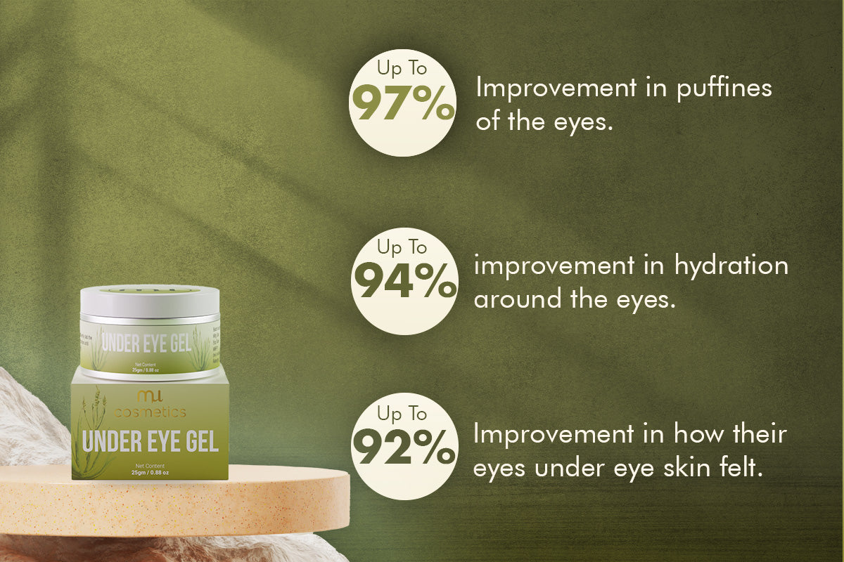 According to recent surveys, MU Cosmetics' Under Eye Gel stands as a masterful blend of Cocoa Butter, Kokum Butter, and Cranberry extracts, meticulously formulated to offer unparalleled hydration and nourishment to your delicate under-eye area.